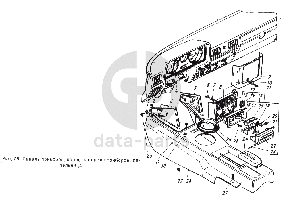 Панель приборов, консоль панели приборов, пепельница ГАЗ-24-10