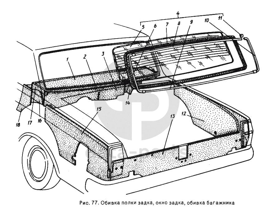 Обивка полки задка, окно задка, обивка багажника ГАЗ-24-10