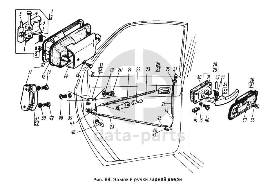 Замок и ручки задней двери ГАЗ-24-10