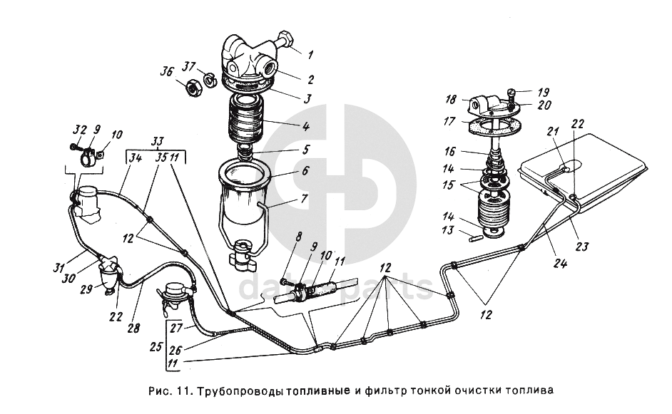 Трубопроводы топливные и фильтр тонкой очистки топлива ГАЗ-24-10