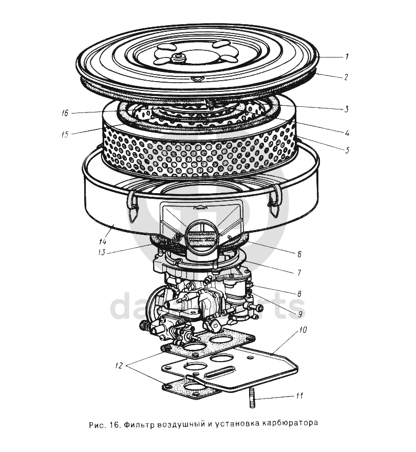 Фильтр воздушный и установка карбюратора ГАЗ-24-10