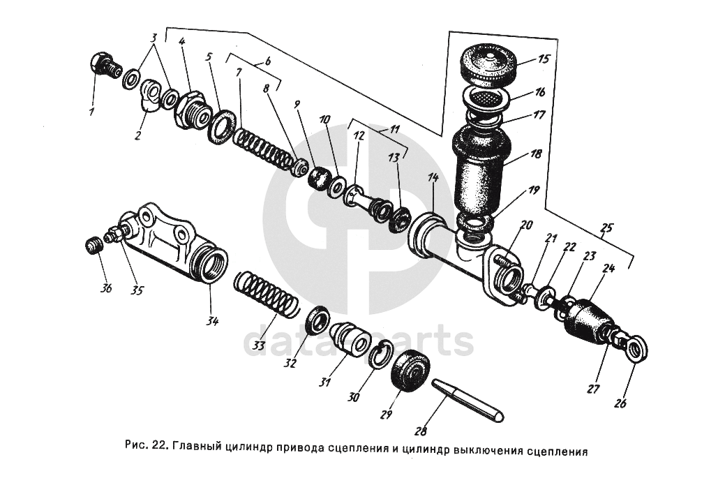 Главный цилиндр привода сцепления и цилиндр выключения сцепления ГАЗ-24-10