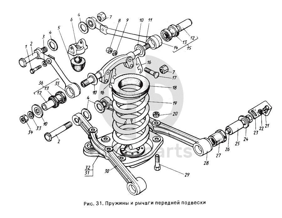 Пружины и рычаги передней подвески ГАЗ-24-10
