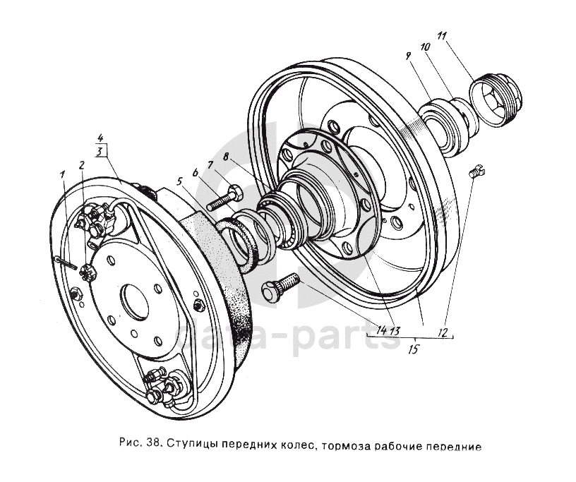 Ступицы передних колес, тормоза рабочие передние ГАЗ-24-10
