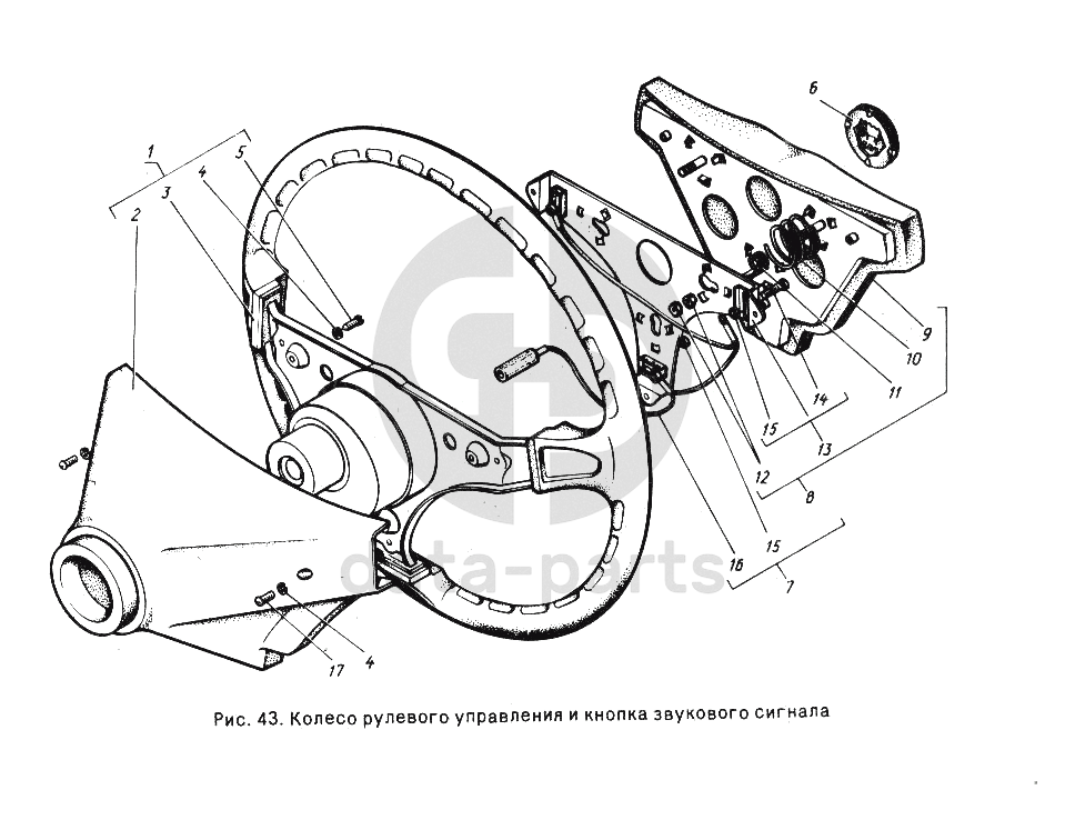 Колесо рулевого управления и кнопка звукового сигнала ГАЗ-24-10