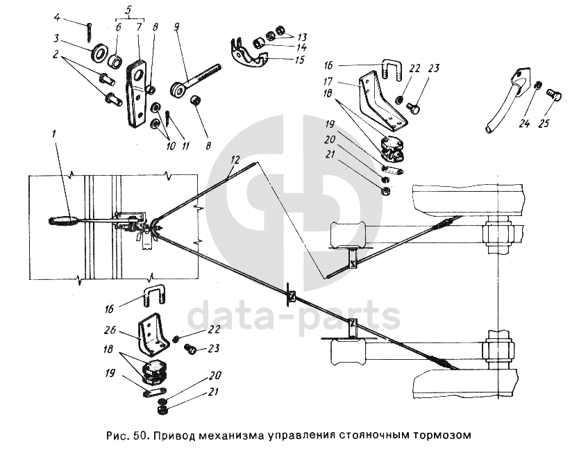 Привод механизма управления стояночным тормозом ГАЗ-24-10