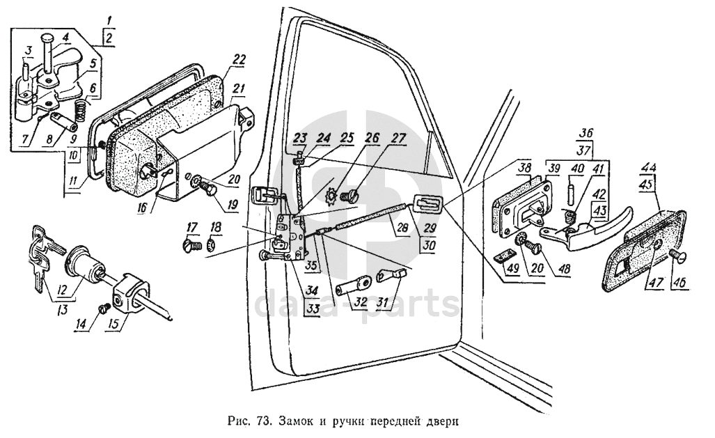 Замок и ручки передней двери ГАЗ-3102