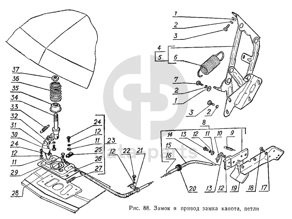 Замок и привод замка капота, петли ГАЗ-3102