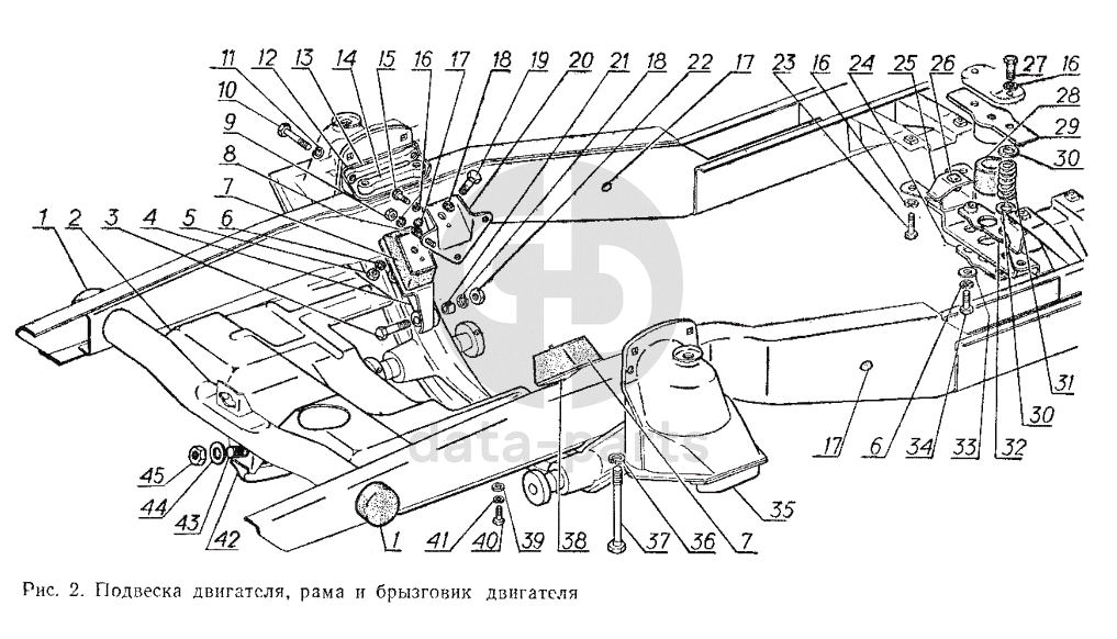 Подвеска двигателя, рама и брызговик двигателя ГАЗ-3102