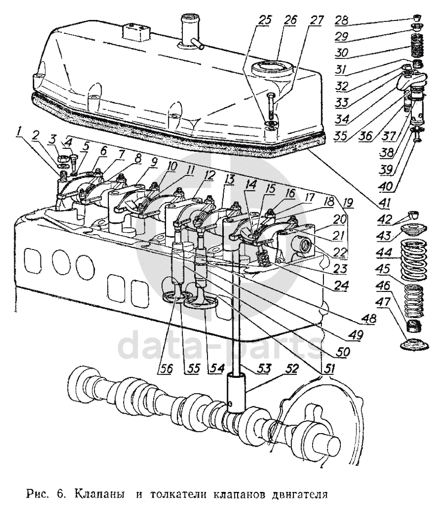 Клапаны и толкатели клапанов двигателя ГАЗ-3102