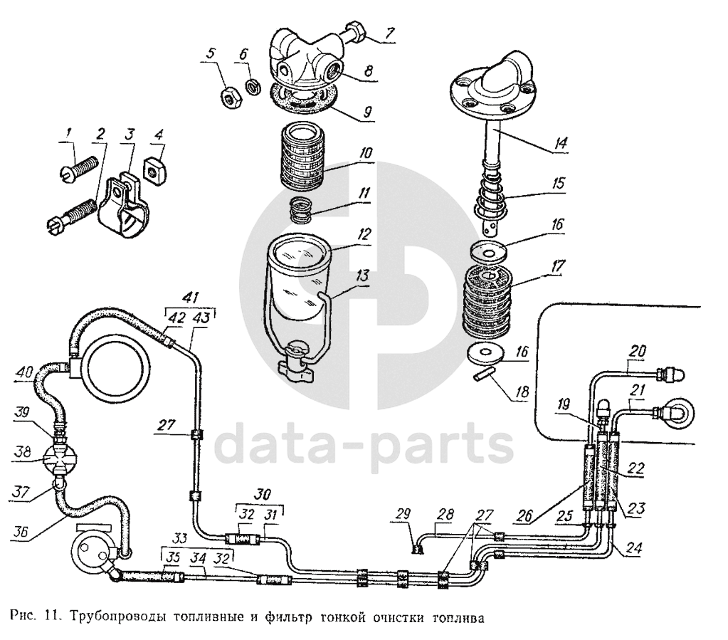 Трубопроводы топливные и фильтр тонкой очистки топлива ГАЗ-3102