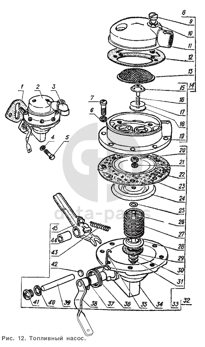Валик ручного привода бензинового насоса с рычагом в сборе