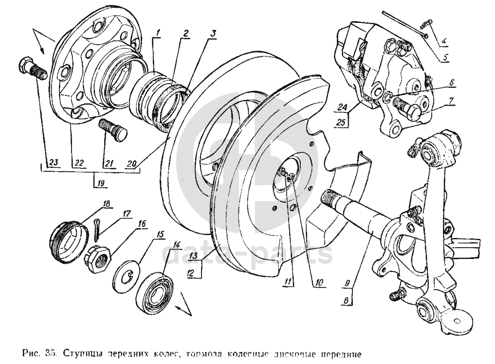 Ступицы передних колес, тормоза колесные дисковые передние ГАЗ-3102