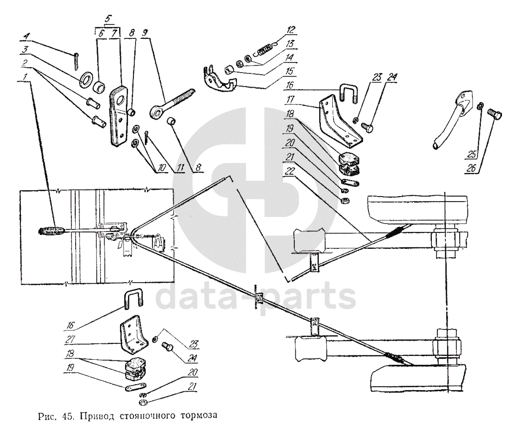 Втулка оси тяги уравнителя троса привода стояночного тормоза