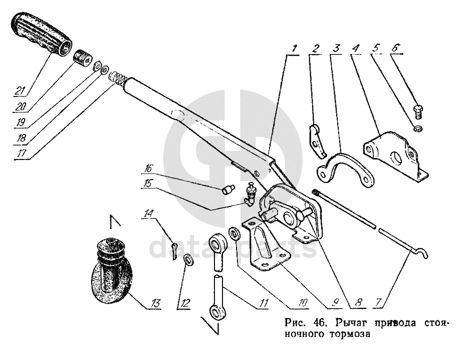 Рычаг привода стояночного тормоза ГАЗ-3102