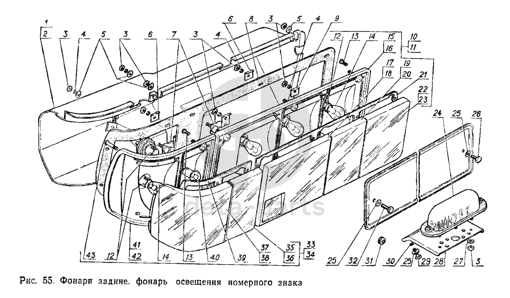 Фонари задние, фонарь освещения номерного знака ГАЗ-3102
