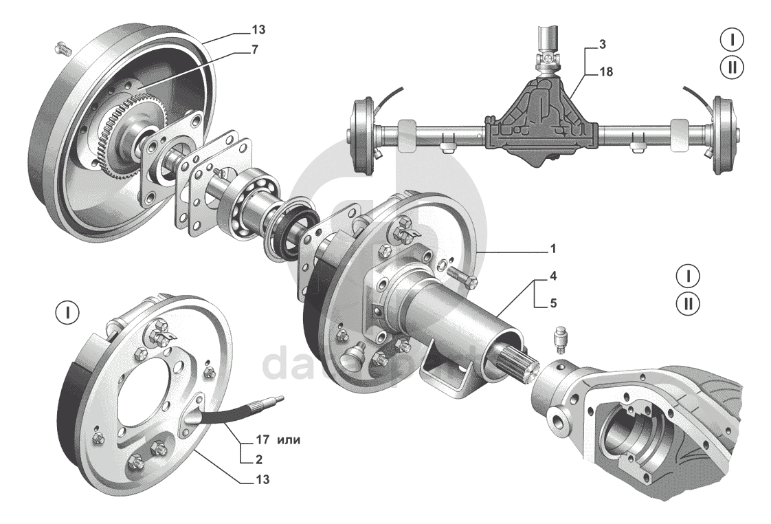 Мост задний автомобилей: I-с АБС тормозов, II-без АБС ГАЗ-3102, 3110 (дополнение)