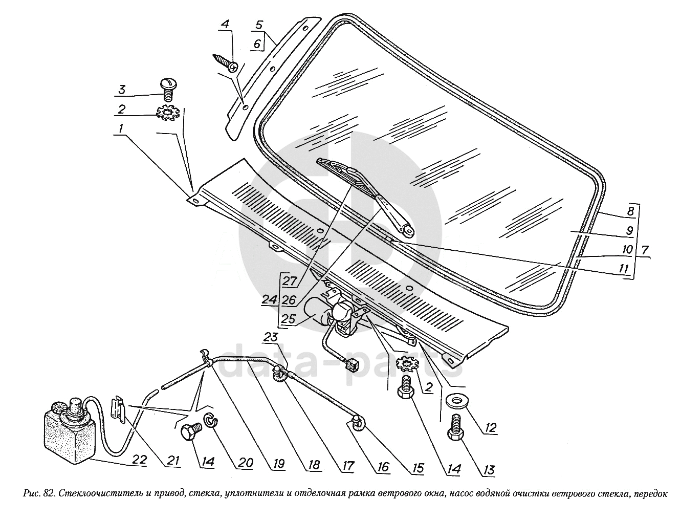 Стеклоочиститель и привод, стекла, уплотнители и отделочная рамка ветрового окна, насос водяной очистки ветрового стекла ГАЗ-31029