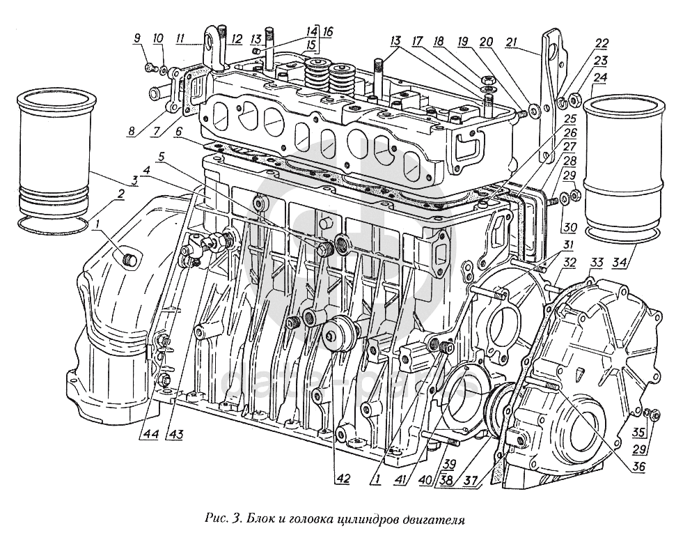 Блок и головка цилиндров двигателя ГАЗ-31029
