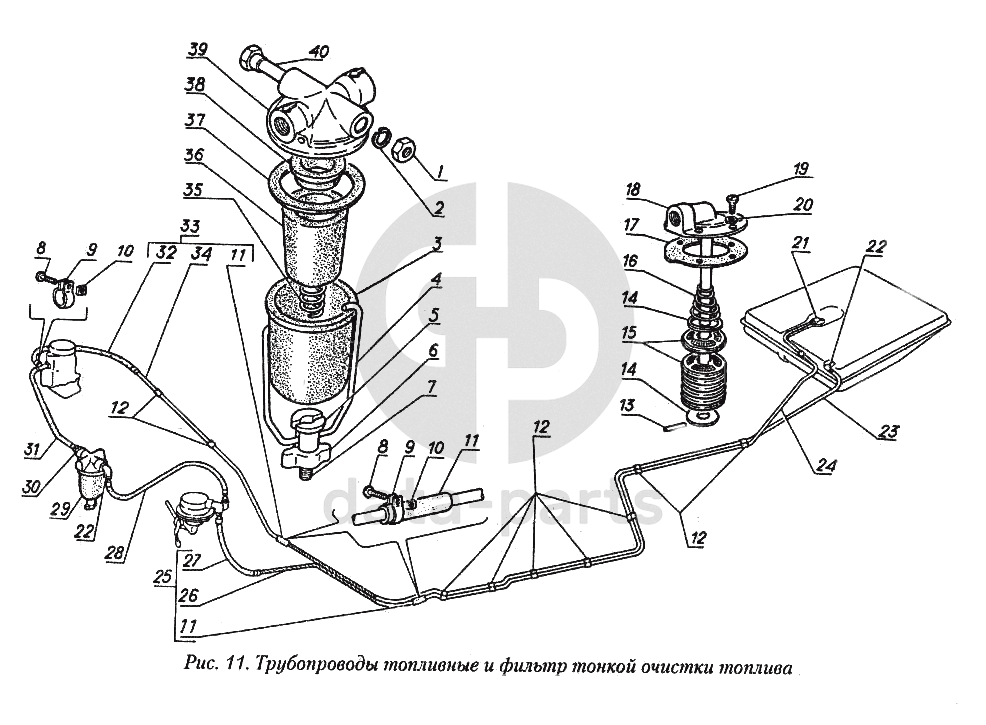 Трубопроводы топливные и фильтр тонкой очистки топлива ГАЗ-31029