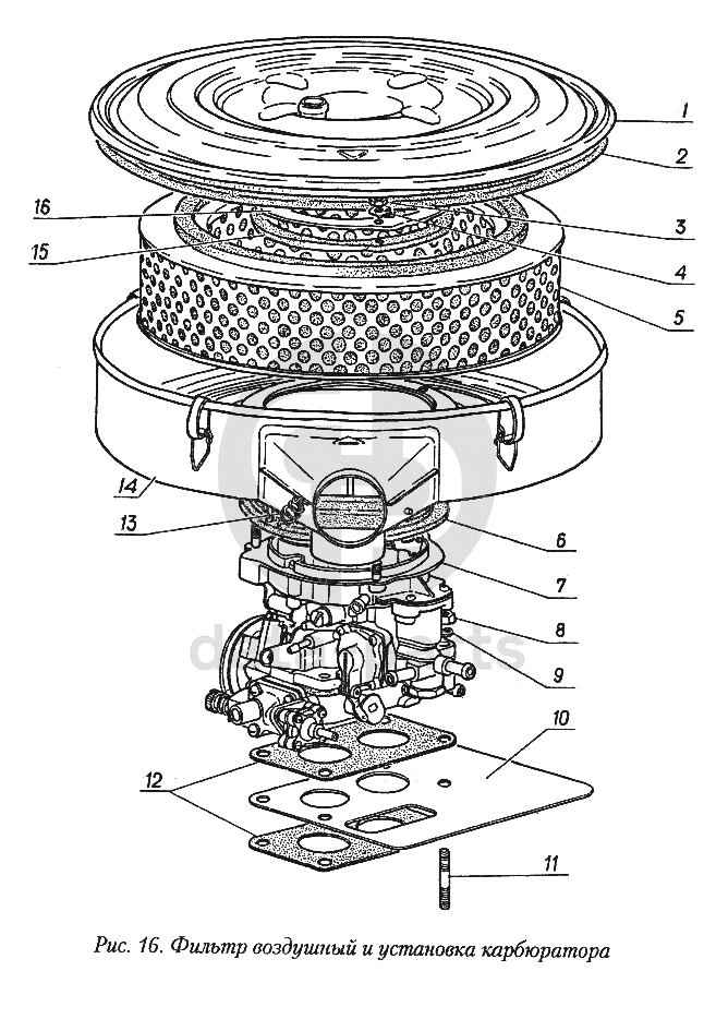 Фильтр воздушный и установка карбюратора ГАЗ-31029