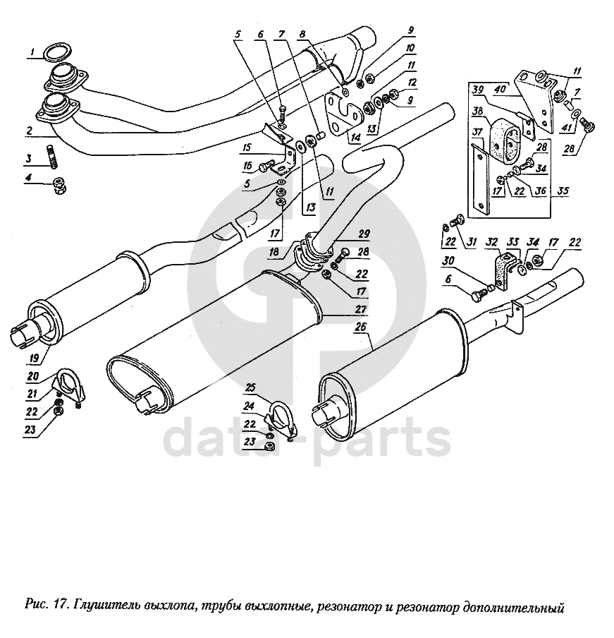 Глушитель выхлопа, трубы выхлопные, резонатор и резонатор дополнительный ГАЗ-31029