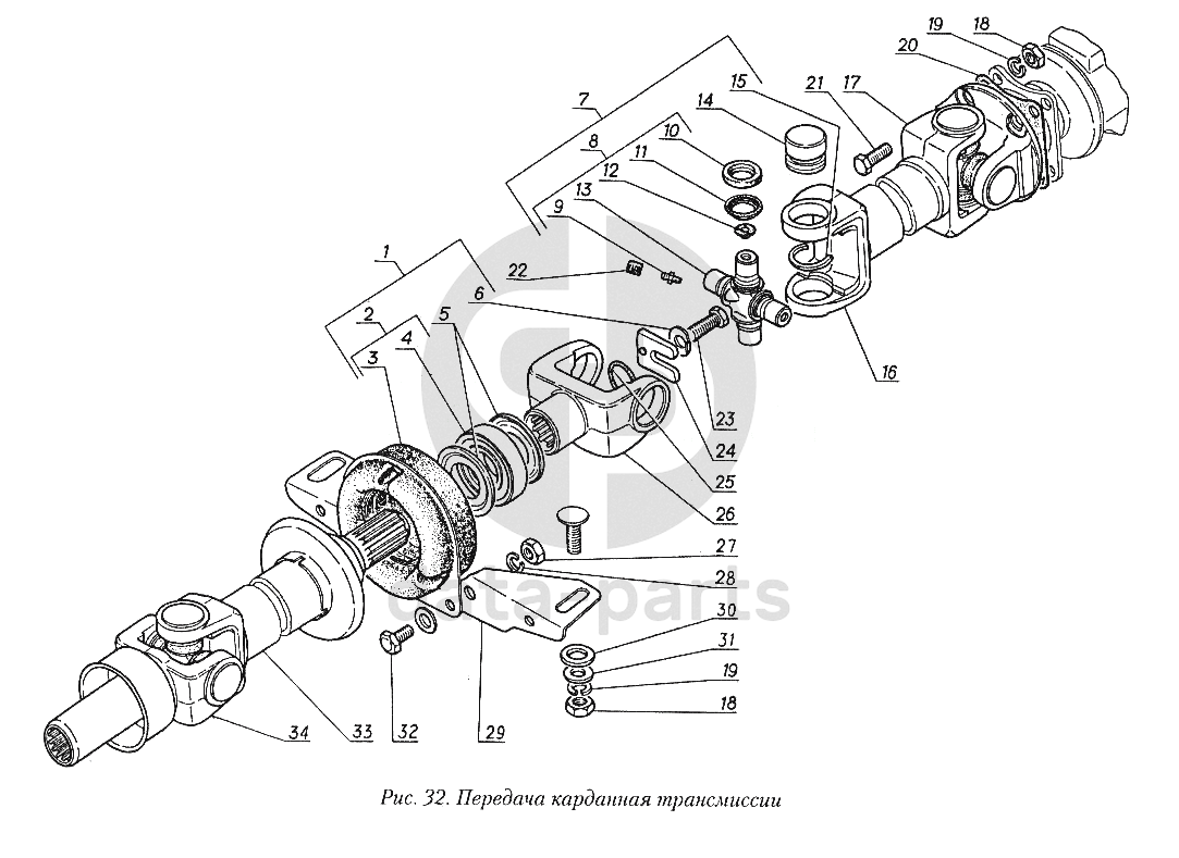 Крестовина кардана с манжетами и подшипниками в сборе (комплект)