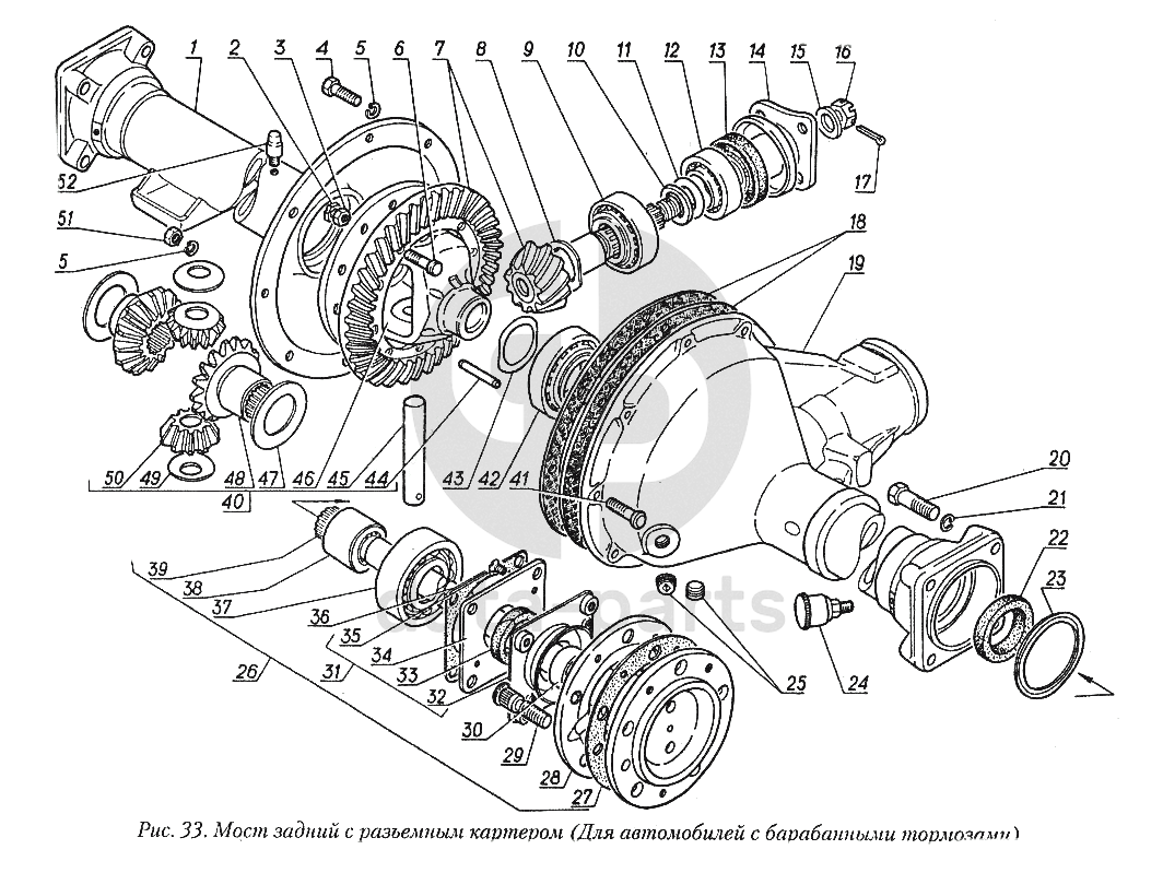 Мост задний с разъемным картером (для автомобилей с барабанными тормозами) ГАЗ-31029