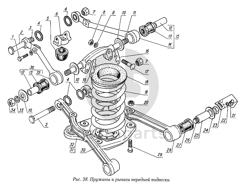 Пружины и рычаги передней подвески (для автомобилей с барабанными тормозами) ГАЗ-31029