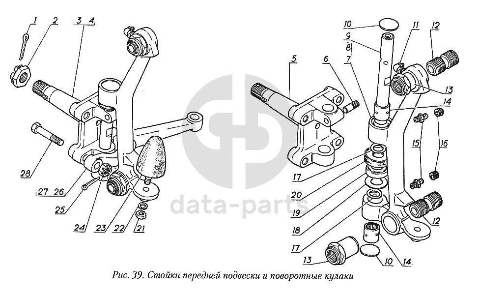 Стойки передней подвески и поворотные кулаки (для автомобилей с барабанными тормозами) ГАЗ-31029
