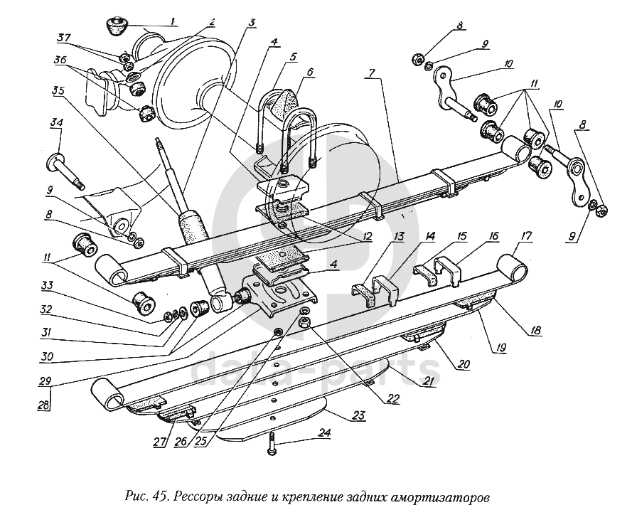 Рессоры задние и крепление задних амортизаторов ГАЗ-31029