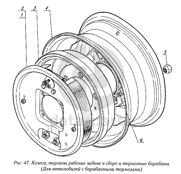 Колеса, тормоза рабочие задние в сборе и тормозные барабаны (для автомобилей с барабанными тормозами) ГАЗ-31029