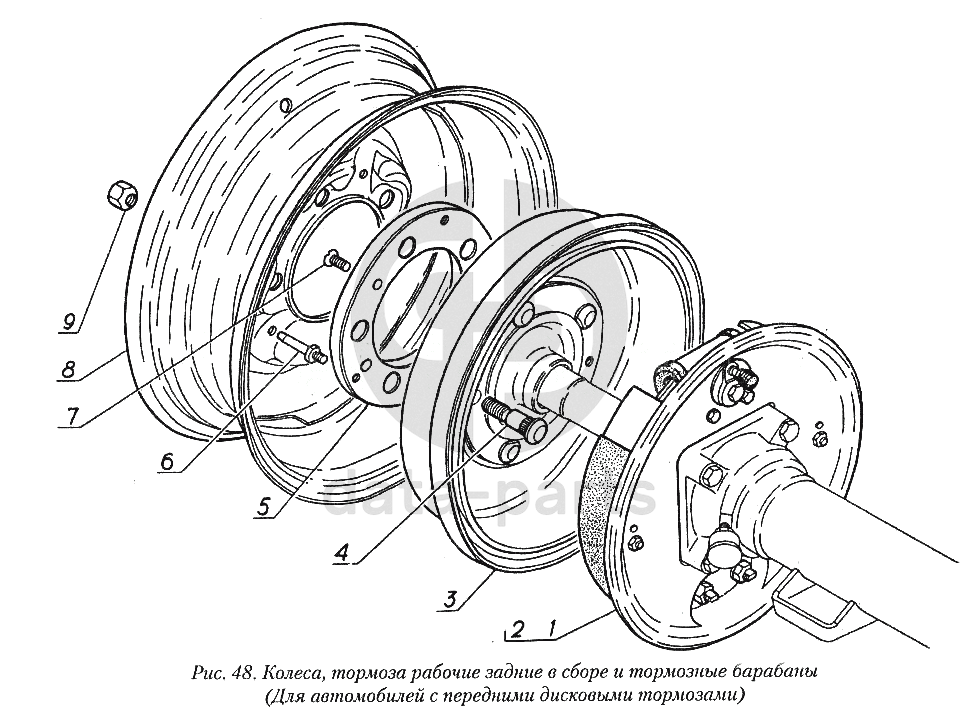 Колеса, тормоза рабочие задние в сборе и тормозные барабаны (для автомобилей с передними дисковыми тормозами) ГАЗ-31029