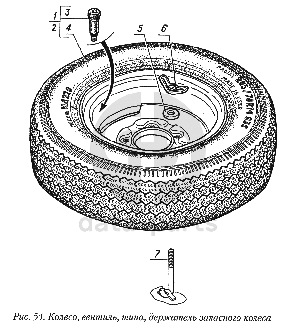 Колесо, вентиль, шина, держатель запасного колеса ГАЗ-31029