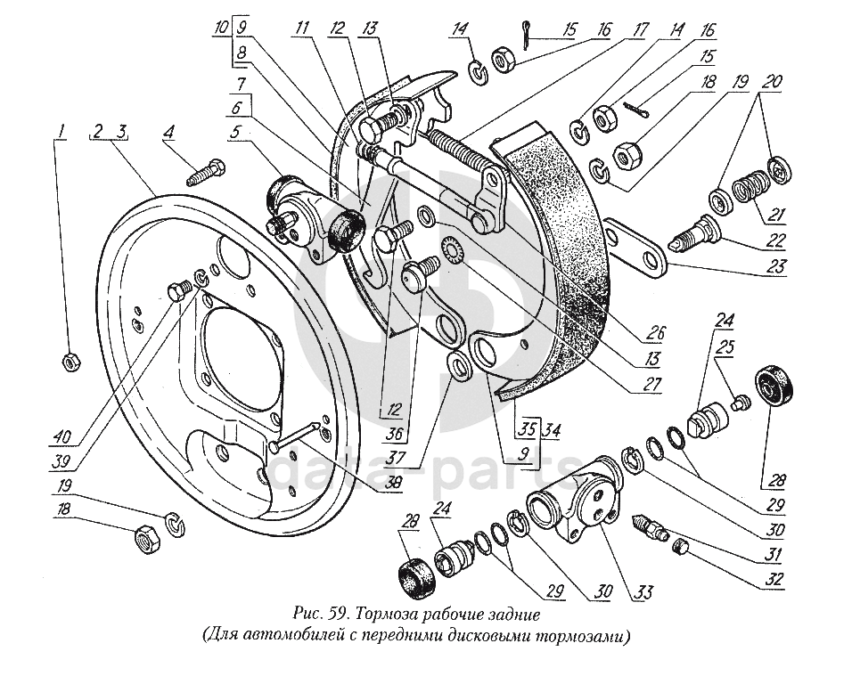 Тормоза рабочие задние (для автомобилей с передними дисковыми тормозами) ГАЗ-31029