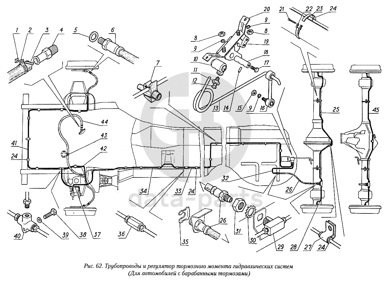 Трубопроводы и регулятор тормозного момента гидравлических систем (для автомобилей с барабанными тормозами) ГАЗ-31029