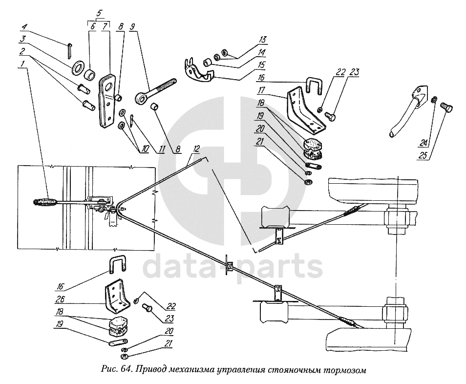 Привод механизма управления стояночным тормозом ГАЗ-31029