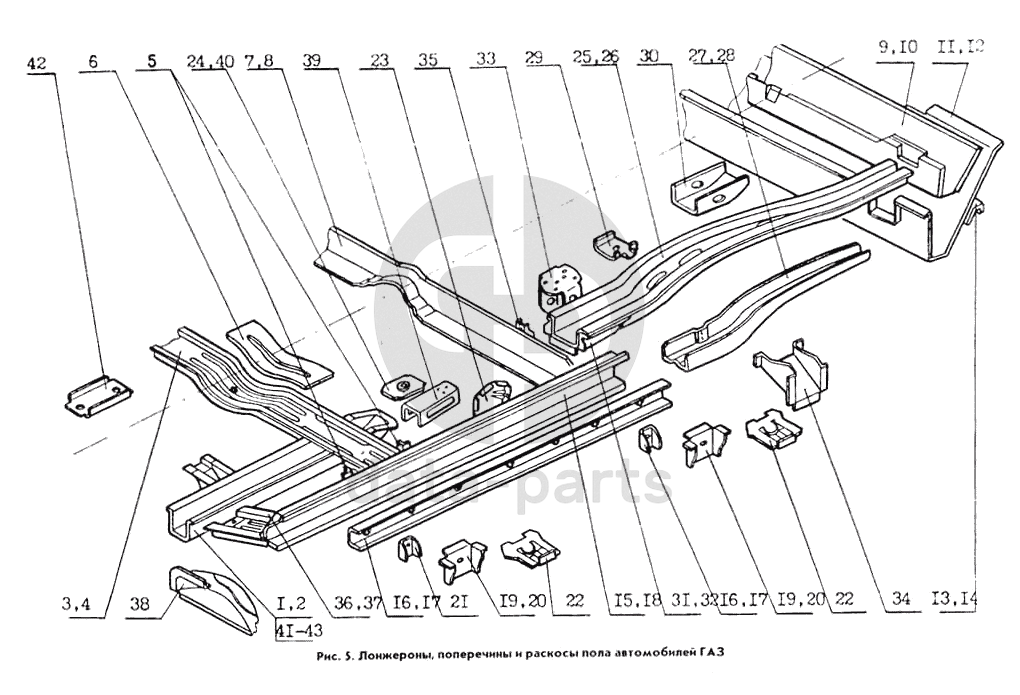 Лонжероны поперечины и раскосы пола Кузов ГАЗ 31029