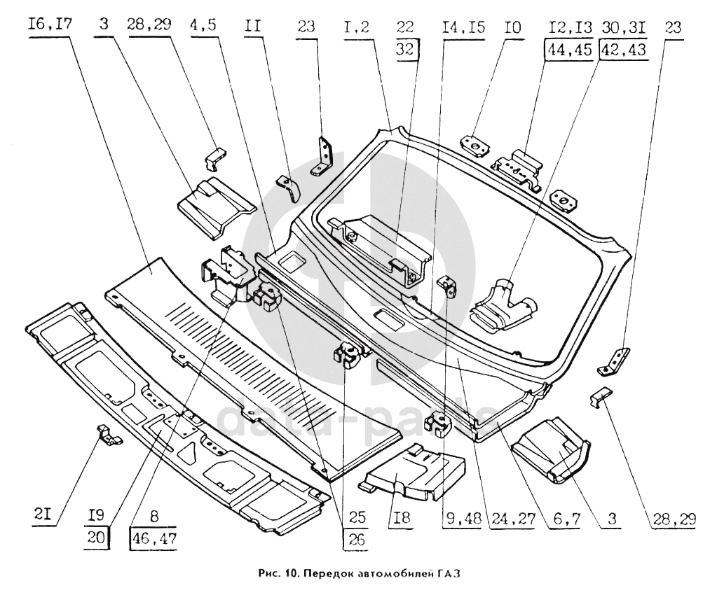 Панель передка верхняя (детали, поставляемые в запасные части)