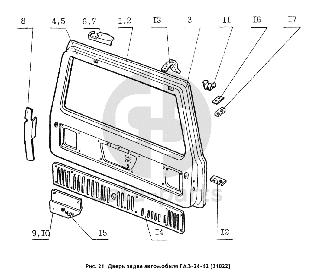 Дверь задка автомобиля ГАЗ-24-12 (31022) Кузов ГАЗ 31029