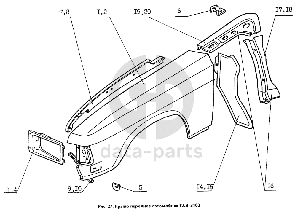 Крыло переднее левое (детали, поставляемые в запасные части)