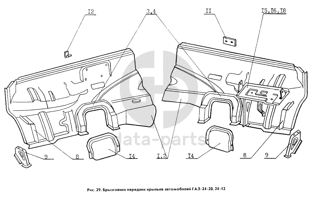 Брызговики передних крыльев Кузов ГАЗ 31029