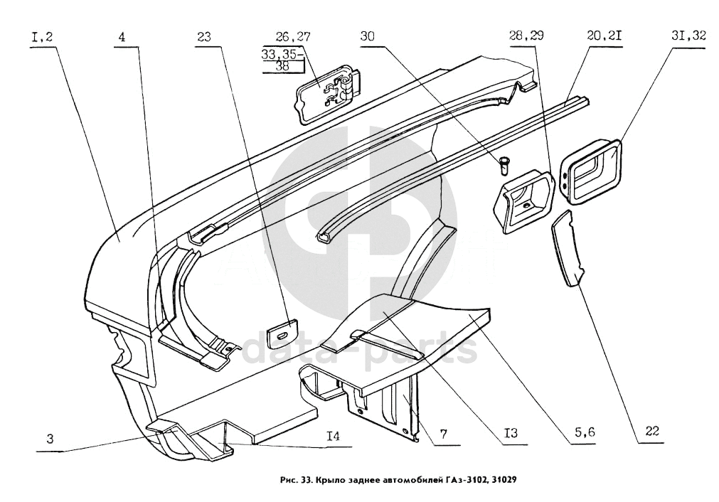Крыло заднее правое (детали, поставляемые в запасные части)