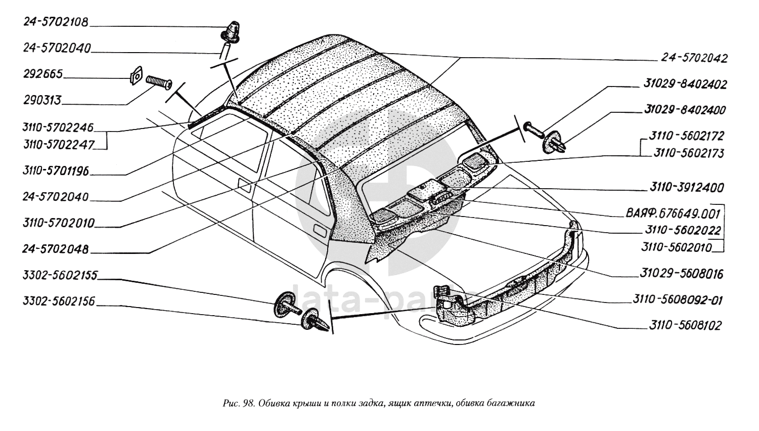 Обивка крыши и полки задка, ящик аптечки, обивка багажника ГАЗ-3110
