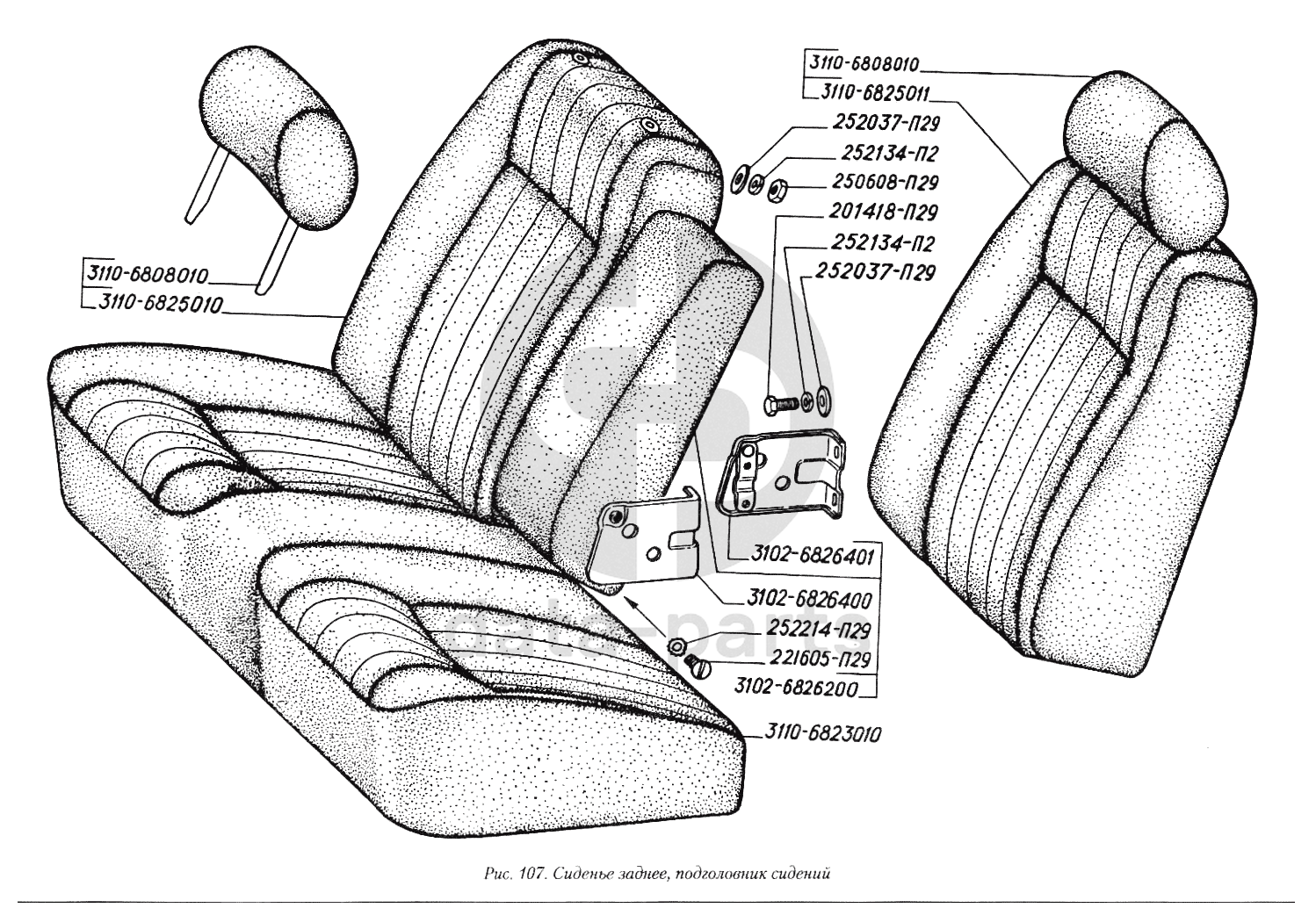 Сиденье заднее, подголовник сидений ГАЗ-3110