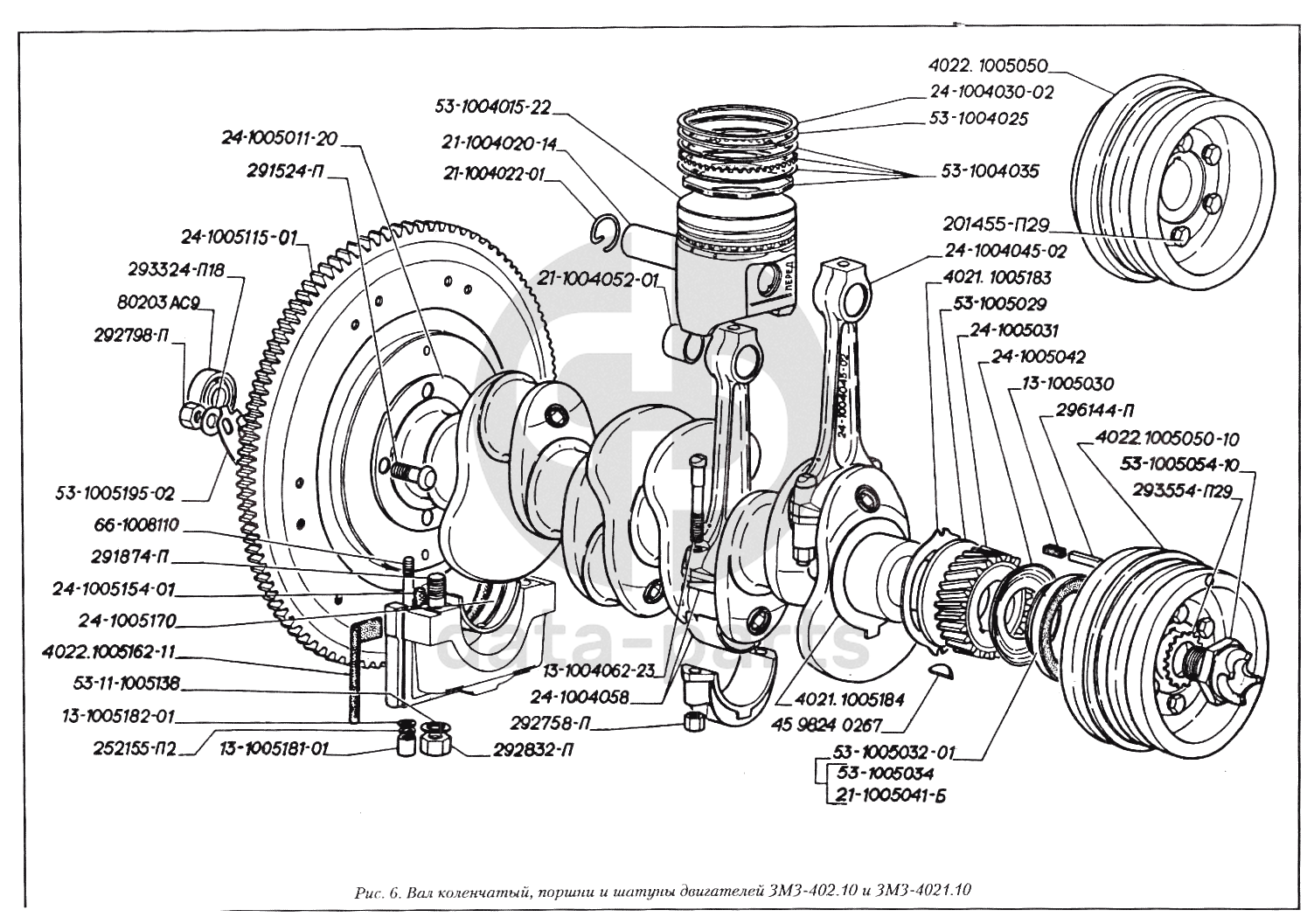 Вал коленчатый, поршни и шатуны двигателей ЗМЗ-402.10 и ЗМЗ-4021.10 ГАЗ-3110