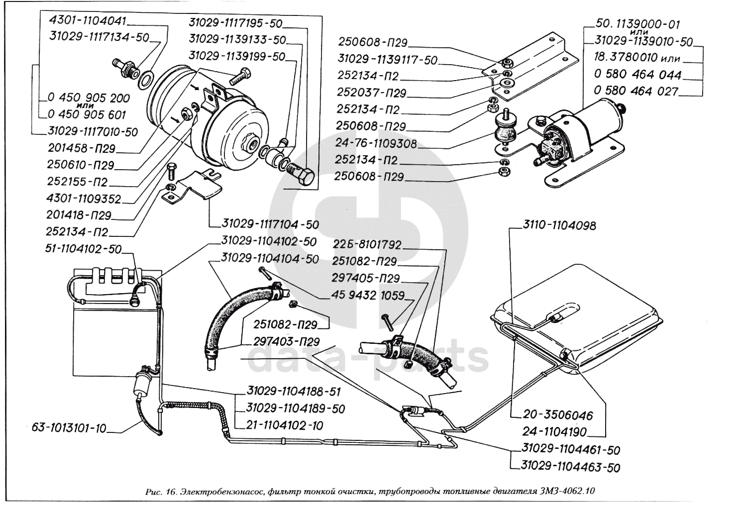 Электробензонасос, фильтр тонкой очистки, трубопроводы топливные двигателя ЗМЗ-4062.10 ГАЗ-3110