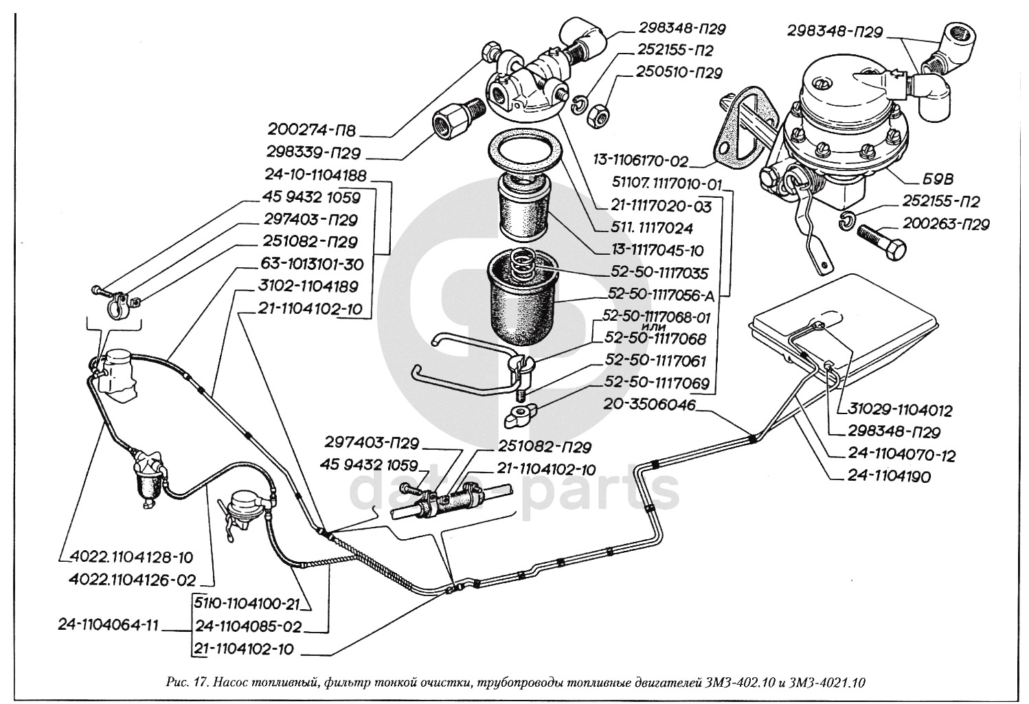 Насос топливный, фильтр тонкой очистки, трубопроводы топливные двигателей ЗМЗ-402.10 и ЗМЗ-4021.10 ГАЗ-3110