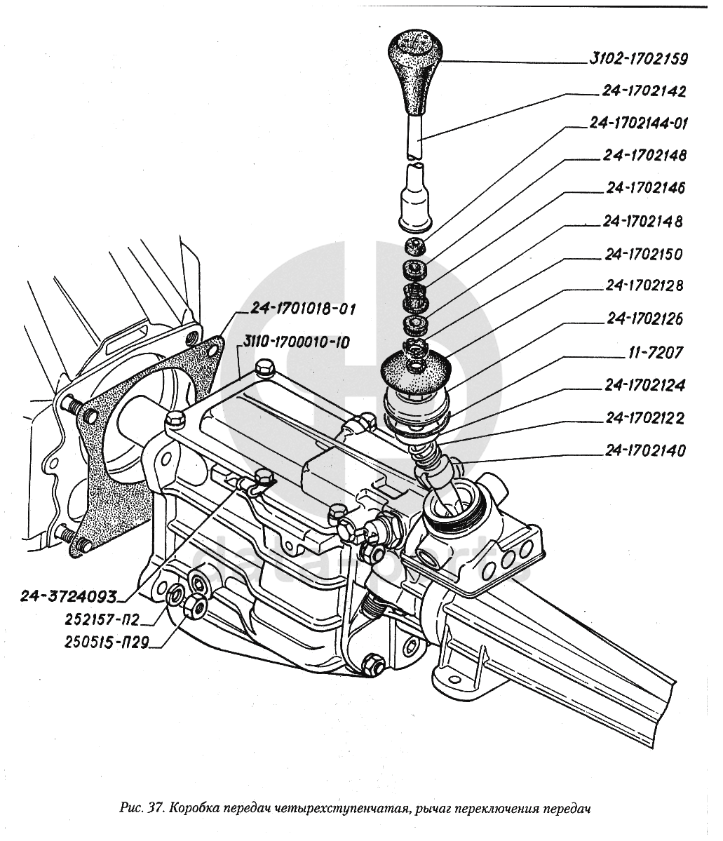 Коробка передач четырехступенчатая, рычаг переключения передач ГАЗ-3110