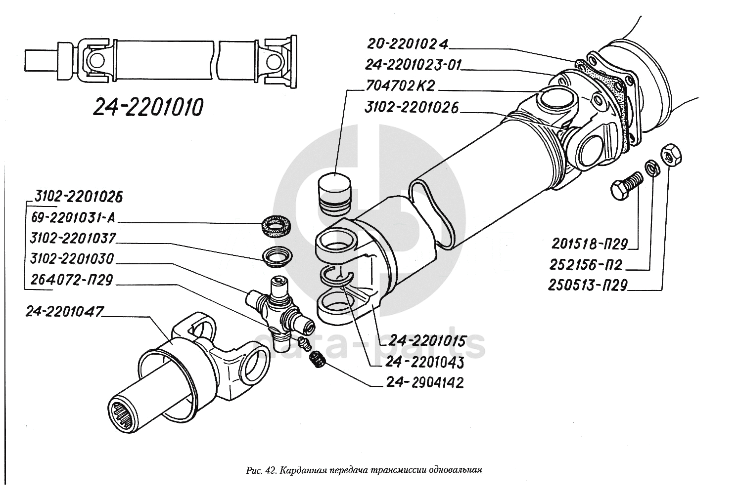 Карданная передача трансмиссии одновальная ГАЗ-3110